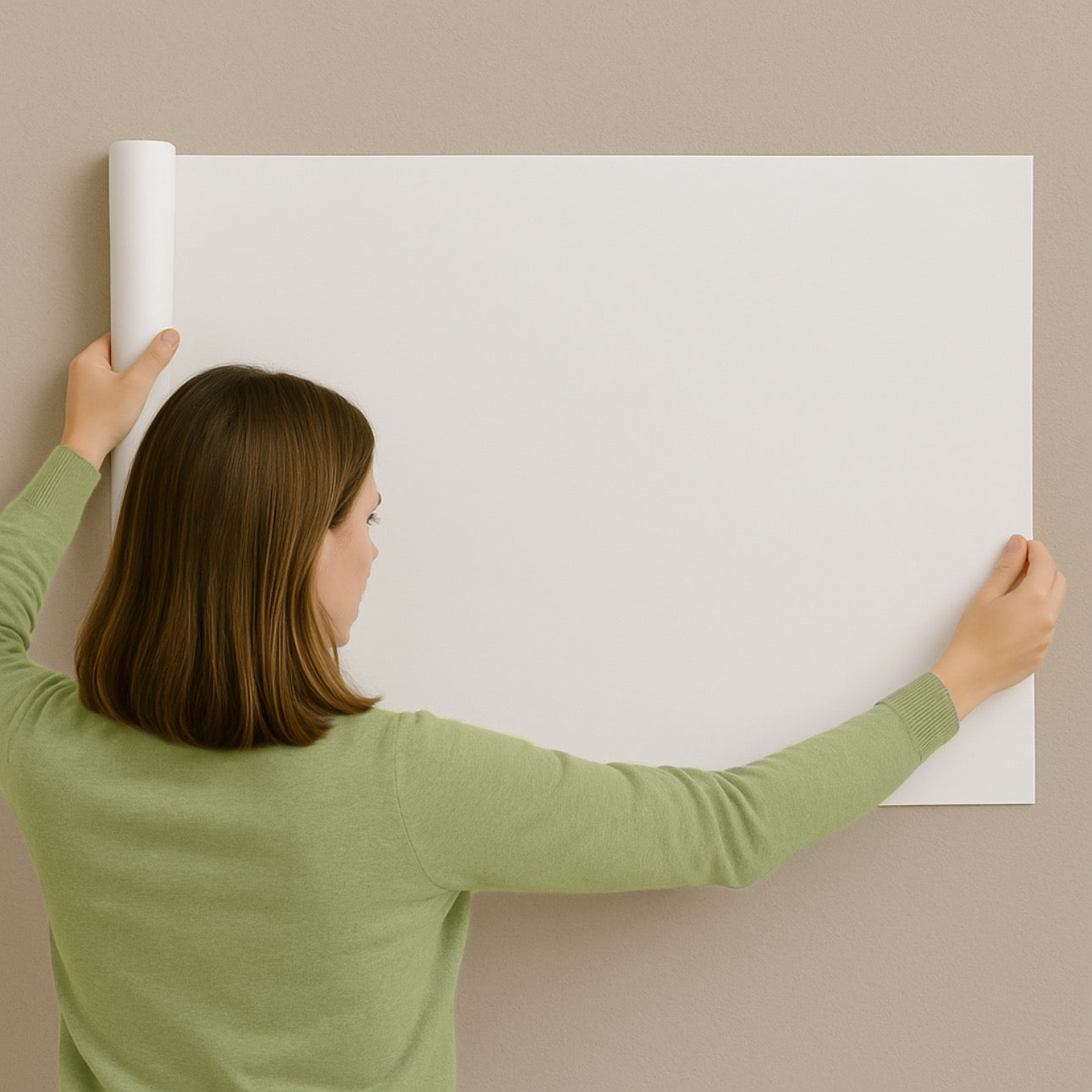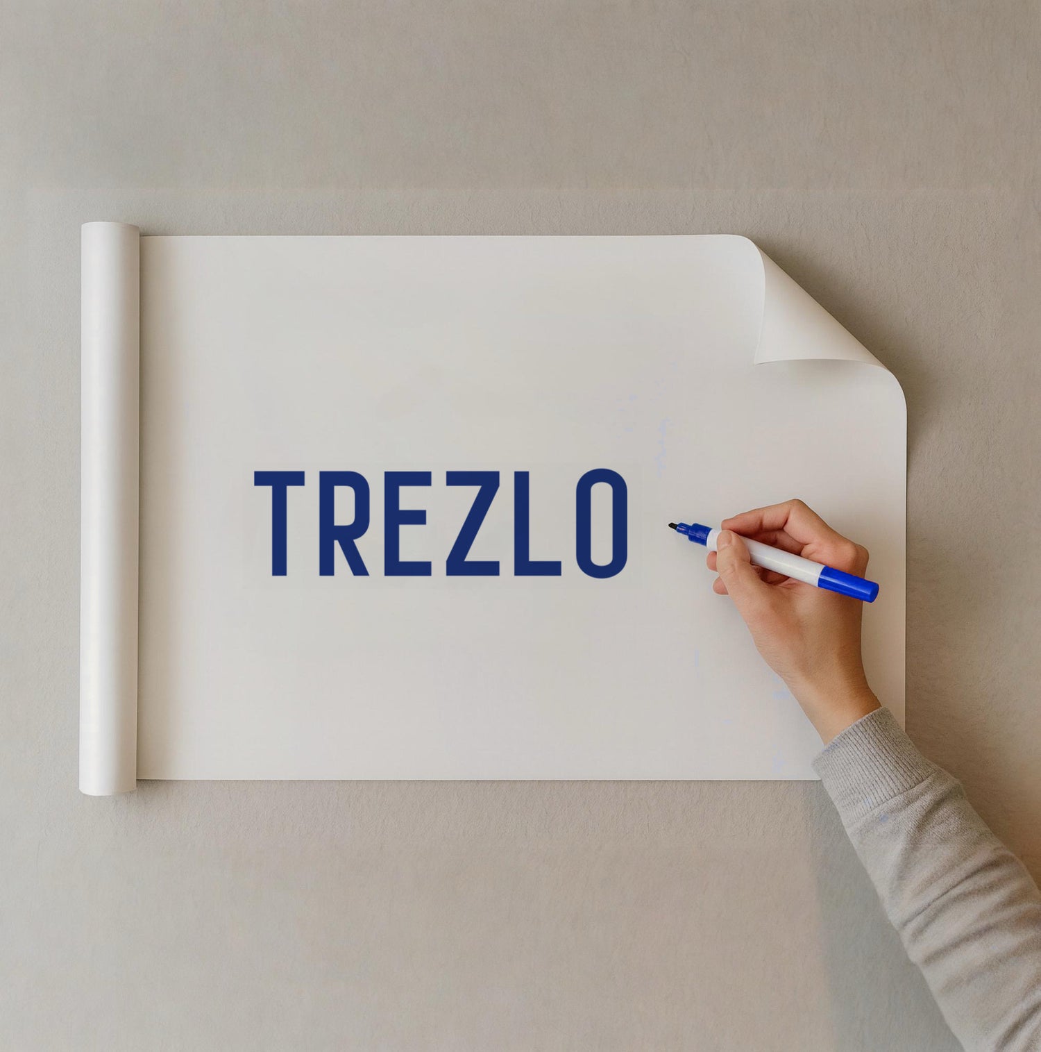 Trezlo™ uses innovative static cling technology to transform any smooth wall into a writable whiteboard. Roll it out, cut to fit, press onto any wall — it holds strong with no nails, no glue, no damage.